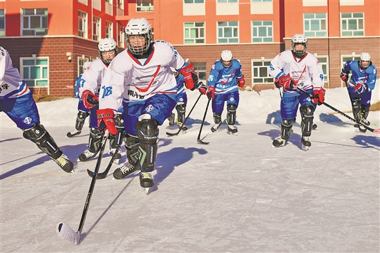 2月20日,呼倫貝爾市海拉爾區南開路中學的冰球隊員進行寒假集訓。本報記者 蔚可任 攝