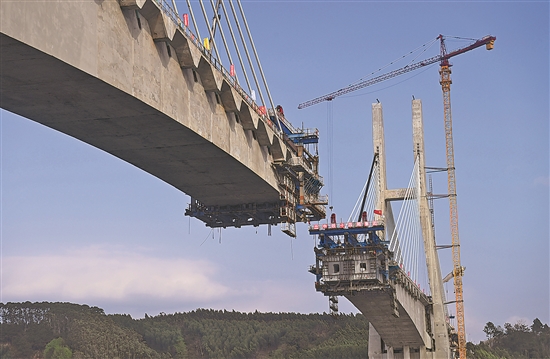 據(jù)介紹,南深高鐵南玉段項(xiàng)目是廣西自主投資建設(shè)的第一條時(shí)速350公里的高速鐵路,西起南寧市,向東經(jīng)貴港市進(jìn)入玉林市。項(xiàng)目建成通車后,南寧至玉林行程將由2小時(shí)縮短至50分鐘左右。六律邕江特大橋主跨320米,是南深高鐵南玉段的重點(diǎn)控制性工程。新華社記者 陸波岸 攝