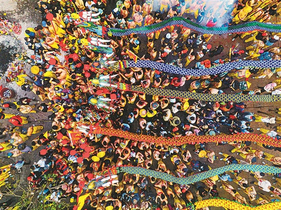 南寧,118條吉祥炮龍激情起舞,走街串巷“祛除晦氣”。劉崢 攝/視覺(jué)中國(guó)