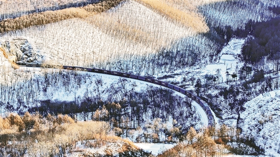 2月18日,黑龍江省最大的對俄陸路口岸城市綏芬河仍是一片白雪皚皚。中國鐵路哈爾濱局集團有限公司牡丹江機務段綏芬河車間出國班組的火車司機牽引著長長的中歐班列,如蛟龍一般往復穿行在崇山峻嶺之間,將“中國制造”源源不斷地運出國門。陽光所照之處,為冰雪覆蓋的大地披上了一層暖暖的金色。