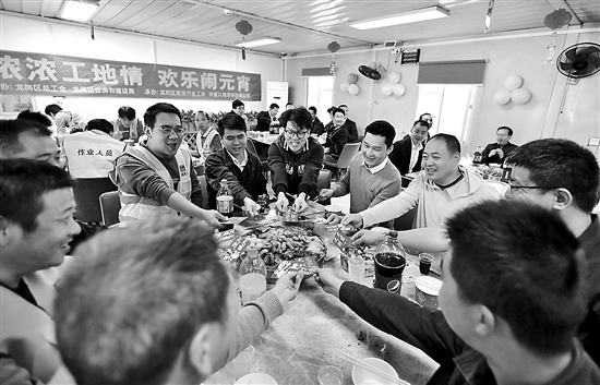 連日來,深圳市龍崗區住建局聯合區總工會、區建筑行業工會聯合會等為開春第一批返崗的建筑工友送上“暖心大禮”。圖為龍崗區第六人民醫院二期工程項目工友展示領到的開工“利是”。節日期間,龍崗區向轄區各建筑工地開展送知識、送健康、送關愛等各類活動200余場次,惠及建筑工友約2萬人。本報記者 劉友婷 本報通訊員 古震華 攝