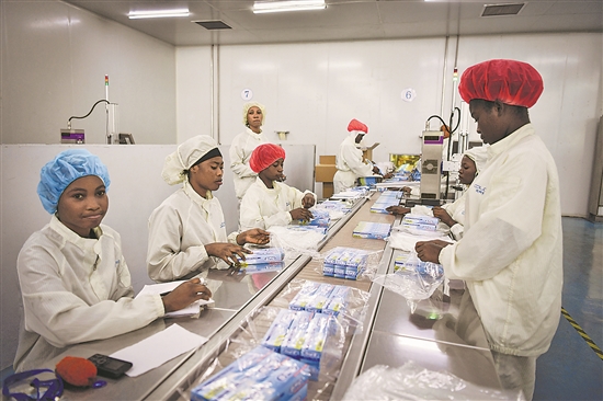 當(dāng)?shù)貢r(shí)間3月1日,在尼日利亞拉各斯,工人在萊基自貿(mào)區(qū)的一家日化用品公司車(chē)間內(nèi)工作。新華社記者 韓旭 攝