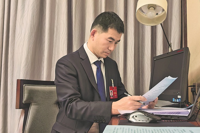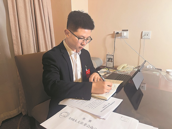 3月4日晚,中鐵六局豐橋橋梁有限公司石家莊項(xiàng)目部副經(jīng)理王足剛代表正在修改自己的建議。今年全國兩會上,王足剛代表把關(guān)注點(diǎn)放在了智能建造人才培育上。他建議,通過加大校企合作,將先進(jìn)的智能建造技術(shù)帶入職業(yè)院校。本報(bào)記者 王偉偉 攝