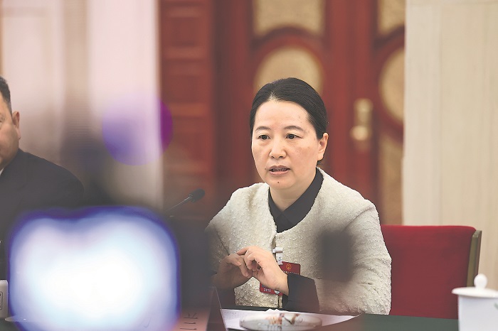 3月6日,陜西師范大學西北歷史環境與經濟社會發展研究院副院長方蘭代表在陜西代表團開放團組會議上發言。本報記者 王偉偉 攝