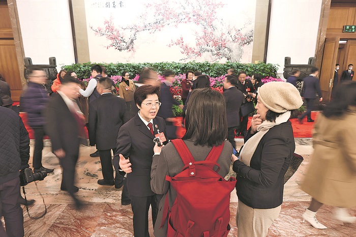 3月4日,全國政協十四屆二次會議在京開幕。開幕會前,陜西省人民檢察院副檢察長高潔委員在北京人民大會堂接受媒體采訪。本報記者 吳凡 攝