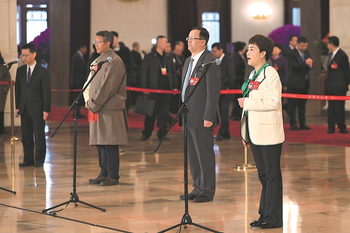 3月7日,全國政協十四屆二次會議第二場“委員通道”在北京人民大會堂舉行,重慶市民政局副局長鄧琳委員回答記者提問。本報記者 吳凡 攝