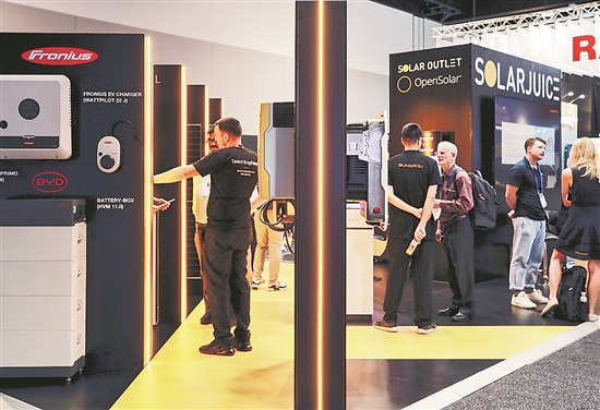 2024澳大利亞智慧能源展日前在悉尼國際會展中心開幕。展會持續兩天,重點關注光伏、儲能和智慧能源領域技術發展。圖為參觀者與參展商在展會上洽談。
