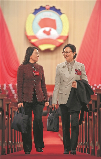 3月9日,全國政協十四屆二次會議第三次全體會議結束后,重慶靜昇律師事務所主任彭靜委員(圖左)和宜墾(天津)集團有限公司董事長陳中紅委員一起走出北京人民大會堂。