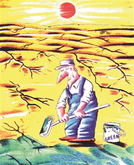 弄虛作假處處皆見。為了讓大地一片“青翠”,當政者雇人在荒野上涂刷綠漆,其成本不低于掘井挖渠。此拙劣手法可休矣!