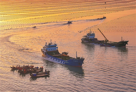 近日,在山東省榮成市愛倫灣鮑魚港,養殖工人從運輸船卸下從福建“越冬”歸來的鮑魚,繼續在榮成海域養殖。多年來,山東省榮成市和福建省莆田市等地開展鮑魚南北轉場、冬夏對調養殖合作,避免南北方海域海水溫度差異對鮑魚產量和質量的影響,提升養殖生態收益,增加漁民收入。