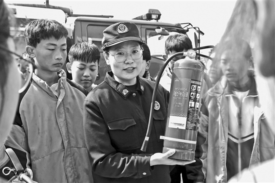 近日,在山東省濱州市沾化區(qū)大高鎮(zhèn)應(yīng)急救援站,消防宣傳員給學(xué)生介紹消防器材。加強(qiáng)校園安全教育,增強(qiáng)學(xué)生自我防護(hù)和應(yīng)急能力,成為本次安全知識(shí)普及的主題。
