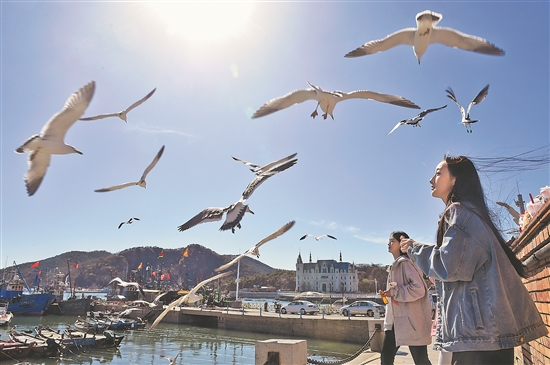 4月16日,游人在大連老虎灘漁人碼頭游覽。進入四月,北方天氣轉暖,遼寧大連各旅游景區游客明顯增加,大連逐漸進入旅游旺季。新華社記者 魯鵬 攝