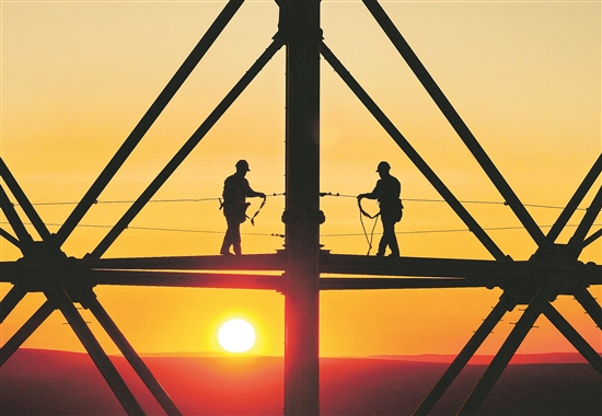 眼下,張北—勝利1000千伏特高壓輸電交流項目工程內蒙古段組塔工作進入高峰階段,施工人員搶抓工期,力爭早日完成組塔任務。該項目起于河北省張家口市張北變電站,止于內蒙古錫林浩特市勝利變電站,于2023年8月開工建設,是國家“十四五”電力發展規劃重點項目,計劃年內投入運行。