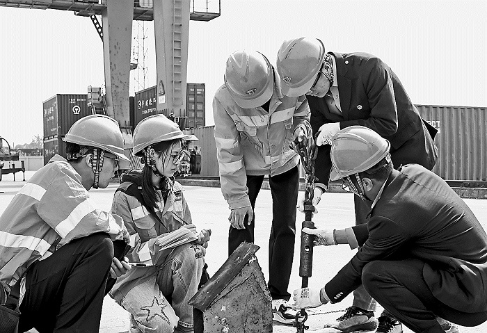 近日,中國鐵路上海局集團有限公司徐州房建公寓段以科技創新為引領,助力培育“公轉鐵”運輸高質量發展,充分發揮“首席技師”在青年科技創新過程中的傳幫帶作用,提升運輸安全保障能力。圖為青年職工在“首席技師”的指導下,對可拆卸多用途運輸鋼制底座架進行碰撞檢測數據分析。