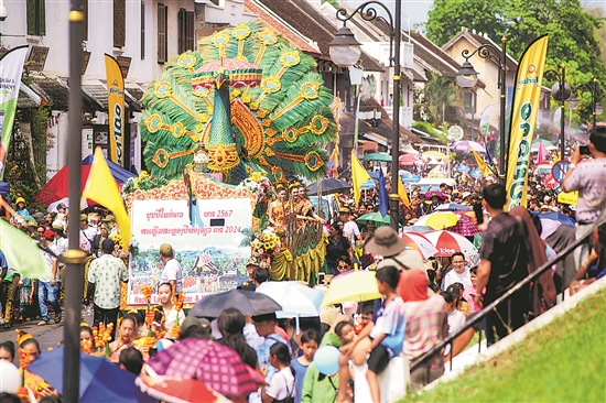 當地時間4月13日至18日,老撾迎來潑水節,潑水節也稱宋干節,是老撾的傳統新年。老撾瑯勃拉邦在節日期間舉行“宋干小姐”巡游活動,“宋干小姐”坐上花車巡游古城。此外,人們還通過互相潑水祝福等方式慶祝這一傳統節日。圖為近日“宋干小姐”在老撾瑯勃拉邦參加潑水節活動。