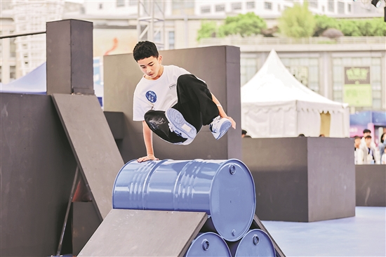 2024“一帶一路”國際跑酷大師賽于近日在浙江寧波天一廣場圓滿落幕。本屆賽程為兩天,主賽為國際跑酷大師賽,附賽為全國少兒跑酷大賽和大眾體驗賽,吸引了來自新加坡、西班牙、泰國、德國、韓國、日本等國家的跑酷好手參賽。經過激烈的角逐,各項目冠軍逐一產生。主場作戰的中國選手李金濤以27.67秒的成績跑出了中國速度,問鼎個人競速賽決賽冠軍。謝雨琪 王劍波 攝