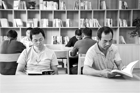 4月23日,湖南省首個高速公路服務區閱讀室“悅行書屋”在京港澳高速平江服務區(北往南方向)投入使用,過往司乘人員正在閱讀室閱讀書籍。新華社記者 陳思汗 攝
