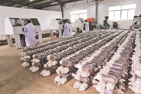 中國援助盧旺達農(nóng)業(yè)技術(shù)示范中心于2011年正式運營,在當(dāng)?shù)厥痉逗屯茝V水稻、旱稻、菌草、水土保持和蠶桑養(yǎng)殖技術(shù),迄今已扶持50多家生產(chǎn)食用菌菌袋的盧旺達企業(yè)和合作社,目前從事食用菌培育的當(dāng)?shù)剞r(nóng)戶超過4000戶,整個產(chǎn)業(yè)鏈帶動3萬多人就業(yè)。圖為近日,在位于盧旺達南方省布塔雷市魯伯納區(qū)的中國援盧農(nóng)業(yè)技術(shù)示范中心,技術(shù)人員給菌袋接種。 新華社記者 董江輝 攝