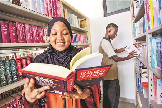 在坦桑尼亞達累斯薩拉姆大學,孔子學院圖書館常常座無虛席,就連書架前都擠滿了學生,這座圖書館被稱為“絲路書屋”。圖為近日,當地學生在坦桑尼亞達累斯薩拉姆大學孔子學院圖書館查閱書籍。新華社發(fā)