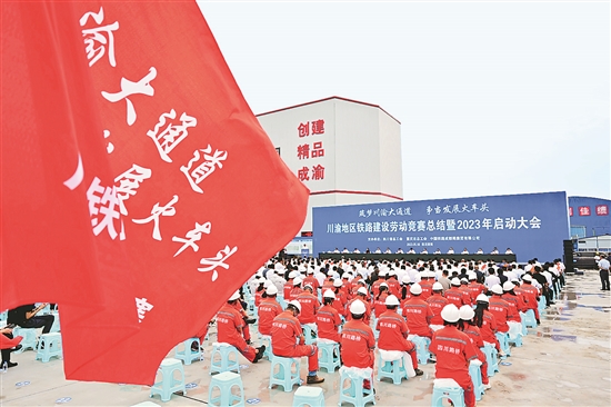 “筑夢川渝大通道 爭當發展火車頭”川渝地區鐵路建設勞動競賽總結暨啟動大會在四川省安岳縣成渝中線鐵路8標段現場舉行。