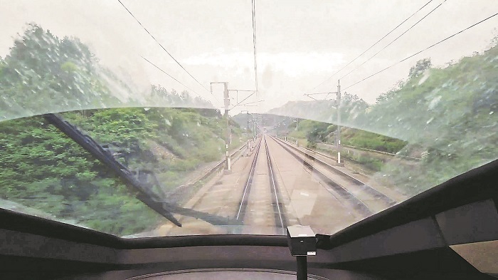 劉偉在高鐵駕駛室里看到的風景。