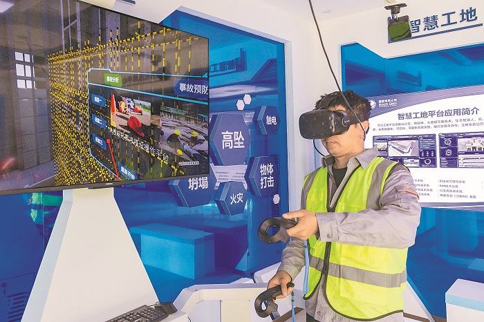 該基地設立VR安全教育體驗館,定期分批組織建筑工人開展安全教育培訓。通過VR虛擬場景,模擬進行高處墜落、欄桿傾倒、觸電、高空墜物機械撞擊等體驗,提高工人們的安全防范意識和自我保護技能。