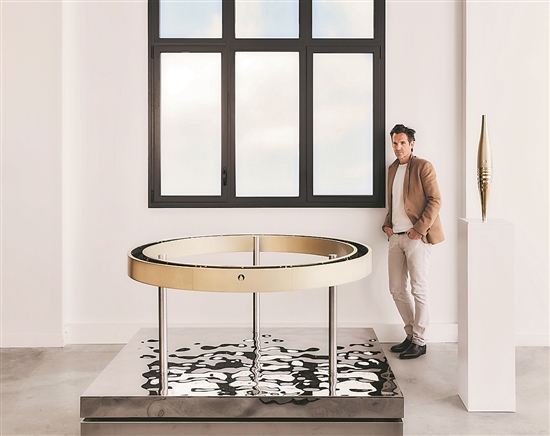 當(dāng)?shù)貢r間5月6日,巴黎奧組委正式公布了奧運(yùn)及殘奧火炬接力火種臺的設(shè)計方案,該火種臺由設(shè)計了巴黎奧運(yùn)火炬的法國著名設(shè)計師馬修·勒漢紐爾操刀完成,實(shí)物形象上與奧運(yùn)火炬也高度融合;同時還公布了給每位火炬手的紀(jì)念品——名為“火炬之心”的圓環(huán)。這是設(shè)計師馬修·勒漢紐爾與火種臺合影。新華社發(fā)
