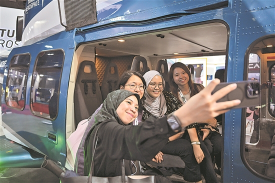 當地時間5月7日,在馬來西亞吉隆坡,參觀者在防務展上留影。5月6日,第18屆馬來西亞亞洲防務展在吉隆坡開幕。本次展會為期4天,吸引包括中國在內的60個國家及地區的超過1000家企業參展。新華社記者 程恒 攝