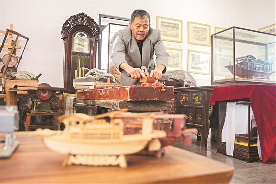 日前,浙江省嘉興市秀洲區(qū)油車港鎮(zhèn)的一處非遺工坊內(nèi),72歲的嘉興市非遺造船技藝傳承人張來生正在制作紅船模型。嘉興作為紅船起航地,每年都會吸引眾多的游客來此參觀游覽,感受當(dāng)?shù)氐募t色文化。近年來,嘉興圍繞自身文化特色,將非遺木作與紅色文化相結(jié)合,邀請老木匠手工制作,開發(fā)出別具特色的文旅產(chǎn)品,受到游客追捧。