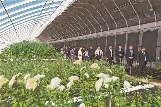 當地時間6月25日,在羅馬尼亞布加勒斯特,參加揭牌儀式的嘉賓在聯合實驗室的溫室參觀。新華社發(克里斯泰爾 攝)