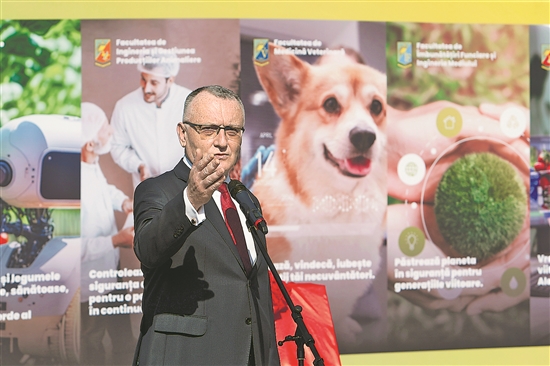 當地時間6月25日,在羅馬尼亞布加勒斯特,布加勒斯特農業科學與獸醫學大學校長肯佩亞努在聯合實驗室的揭牌儀式上致辭。新華社發(克里斯泰爾 攝)