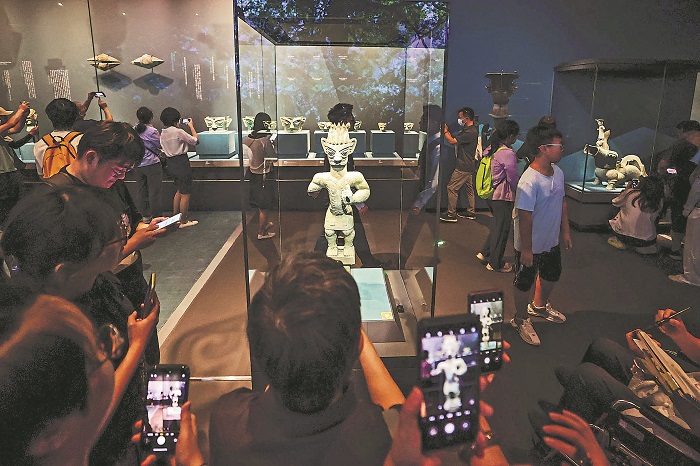 6月27日,“探秘古蜀文明——三星堆與金沙”展覽在北京大運河博物館(首都博物館東館)開幕。