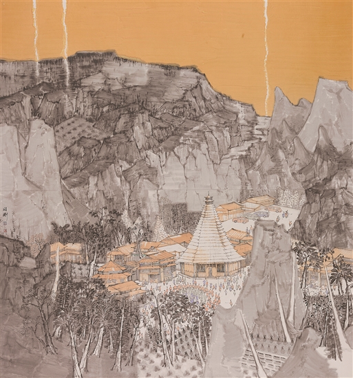 侗鄉新韻(國畫) 廣西 張同剛