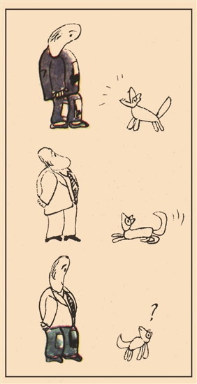 狗子的困惑主要出現在觀察生活的方法,忽視了問題的本質。它使出看家本領關注人的服飾及其變化,卻忘記了人的自身處境和價值。這也難為了狗子,因為這樣的遭遇同樣也常常出現在人類身上。我們都知道,“只認衣冠不認人”,可不是說給狗子聽的;“狗眼看人低”也并非沒有“破圈”的用意。