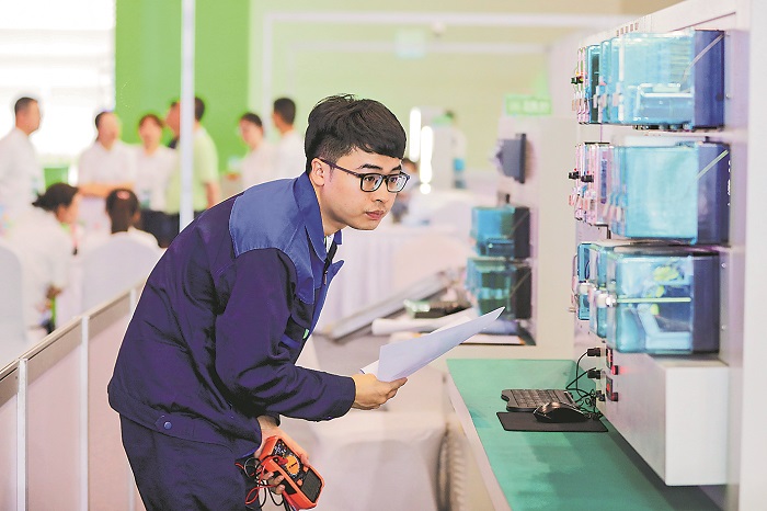 陳權在第二屆“一帶一路”國際技能大賽軌道信號控制技術項目比賽現場。石濤 攝