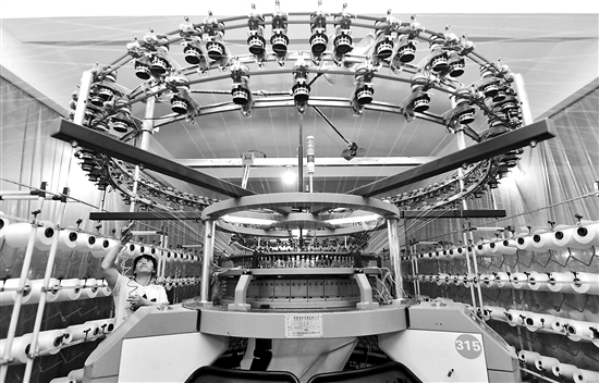 7月5日,河北省肅寧縣一家紡織企業的工人在車間內工作。