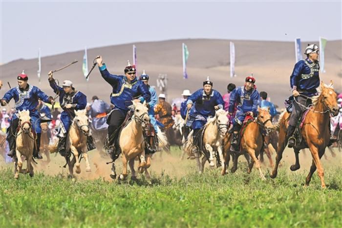 7月14日,“相約草原·遇見那達慕”內蒙古第34屆草原那達慕在錫林郭勒盟開幕。本屆那達慕開幕式由“相約草原”“亮麗北疆”“守望相助”3部分組成,樂器、歌舞等演出精彩紛呈,吸引游客前來感受草原文化。