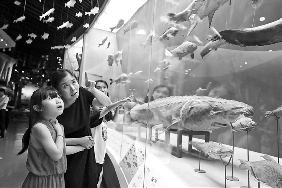重慶市北碚區北溫泉街道的“愛心媽媽”陪伴困境兒童在重慶自然博物館參觀(7月10日攝)。暑期,北碚區北溫泉街道開展“愛心媽媽”伴童行公益活動,“愛心媽媽”帶領困境兒童走進重慶自然博物館,感受自然科學魅力,充實假期生活。新華社發(秦廷富 攝)