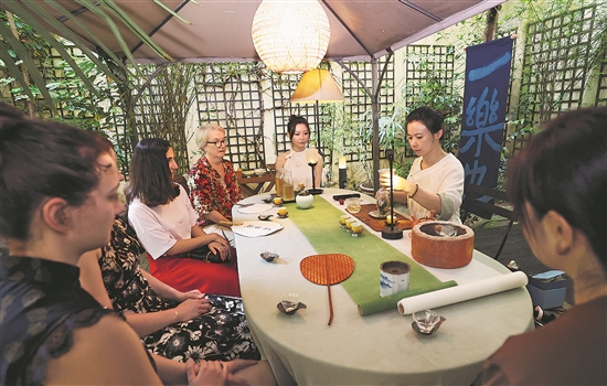 茶藝師張樂2022年在法國巴黎創(chuàng)立了“一樂也”中國茶工作室,每周在充滿中式園林風(fēng)情的小院里為來自法國、中國、摩洛哥、日本等地的學(xué)生上一到兩次茶藝課。此外,她還在當(dāng)?shù)刂行W(xué)、文化機(jī)構(gòu)等擔(dān)任茶藝教師。張樂表示,通過她的展示和介紹,很多人看到了中國茶的好,愛上了中國茶,還在自己家里置辦了茶桌,和家人分享。