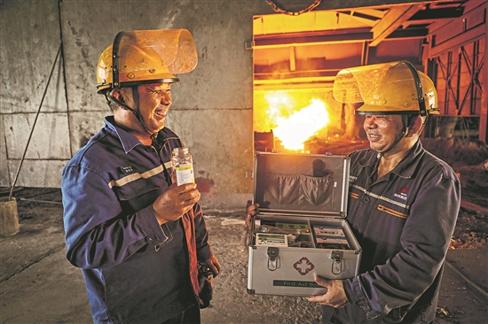 為應對當前高溫酷暑天氣,新鋼集團煉鐵事業部為14個作業區配置了63個清涼“百寶箱”,不僅有人丹、十滴水、金銀花露、藿香正氣口服液,還有風油精、燒傷膏、消毒液、創可貼等用品。同時,他們為崗位備足飲用水和降溫設施,調整高溫時段作業時間,實施互愛聯保制度,普及急救知識,讓職工清涼度夏。