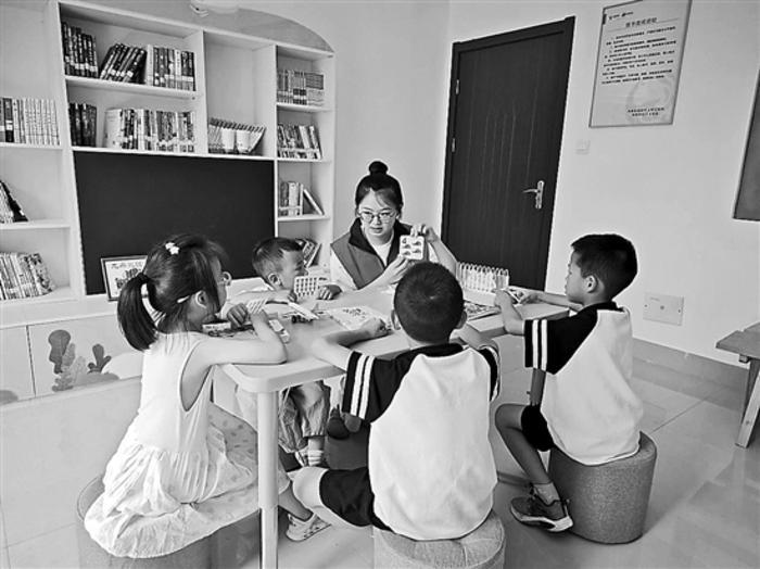 為解決職工子女暑假期間教育問題,浙江省衢州市江山市鳳林鎮開展暖心服務,在黨群服務中心舉辦暑假托管班,為全鎮干部職工及外來務工人員子女免費提供托育服務。圖為托管班老師為小朋友提供培訓。
