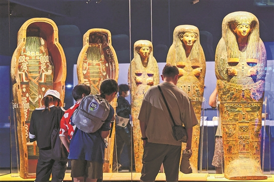 觀眾參觀佩德阿蒙的彩繪人形棺。