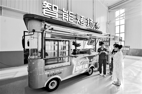 7月20日,在中瑞數字化(深州)產業園,一家智能科技企業生產的機器人在制作烤串。