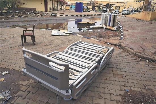 蘇丹衛生部長海賽姆·易卜拉欣日前表示,持續武裝沖突導致蘇丹多家醫院、制藥廠被毀,大量醫療物資遭破壞和劫掠,給醫療衛生部門造成的損失高達110億美元。這是近日在蘇丹首都喀土穆西部恩圖曼市的一座醫院外拍攝的廢棄病床。 新華社發 (穆罕默德·海德爾 攝)