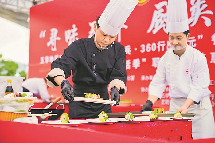 日前,云南省昆明市五華區中式烹調師、調飲師職業技能競賽上,20家餐飲行業企業的60余名參賽職工展開激烈角逐。選手們將烹調技藝、營養知識、滇菜文化等融入實操,通過展現刀工、炒工、炸工、美工等專業技能,制作出一道道色香味俱全的滇菜美食。本報記者 趙黎浩 攝
