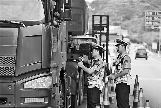 7月23日,在廣西壯族自治區(qū)柳州市柳江區(qū)里高鎮(zhèn),警務(wù)人員在檢查貨車司機(jī)是否存在疲勞駕駛行為。日前,柳州市公安局交警支隊(duì)開展夏季交通安全突出風(fēng)險(xiǎn)專項(xiàng)整治行動,集中查處突出交通違法行為,整改嚴(yán)重源頭風(fēng)險(xiǎn)隱患,營造安全暢通的交通環(huán)境。新華社記者 黃孝邦 攝