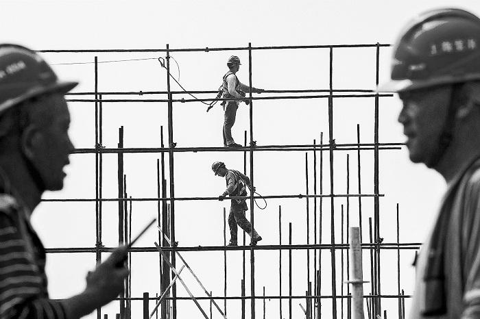 入伏以來,全國多地高溫天氣不斷,連日高溫和暴曬也給工程施工帶來一些挑戰(zhàn)。位于北京市海淀區(qū)西北旺鎮(zhèn)的故宮博物院北院區(qū)項(xiàng)目工地,通過采取錯峰施工、科學(xué)補(bǔ)水、搭建涼棚等舉措應(yīng)對高溫天氣,確保戶外施工人員在安全健康的前提下開展作業(yè),穩(wěn)步推進(jìn)工程進(jìn)度。圖為7月23日,該項(xiàng)目的架子工正在搭建腳手架。本報記者 王偉偉 攝