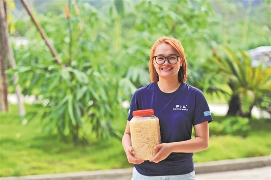 當時柳州螺螄粉產業正迎來快速發展期,螺螄粉原材料市場潛力巨大。顏茜茜和父親顏建條成立了農業公司,采用“公司+種植基地+合作社+農戶+加工廠”的經營模式,發展竹筍種植、研發、腌制產業,探索傳統腌菜產業規?;?、高品質生產新模式。顏茜茜也從“青春靚麗的航空地勤小姐姐”,轉變為“擼起袖子在田間地頭和鄉村工廠間勤勞奔走的‘筍丫頭’”。