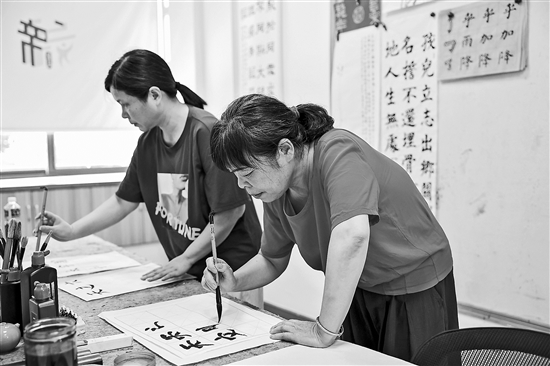 近日,居民在浙江省嘉興市南湖區(qū)東柵街道新南社區(qū)鄰里中心寫書法。暑期期間,該區(qū)下屬各街道社區(qū)及鄉(xiāng)鎮(zhèn)依托黨群服務中心、文明實踐站等場所,重點關注“一老一小”群體,在炎炎夏季讓居民在“家門口”就能享受便利多樣的暑期活動。新華社記者 徐昱 攝