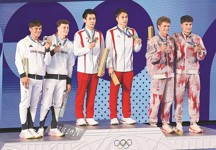 7月29日,在巴黎奧運會跳水男子雙人10米臺決賽中,中國選手練俊杰/楊昊奪得金牌。這對首次參加奧運會的組合當日一路領先,戰勝了勁敵、英國組合戴利/威廉姆斯,如愿將這枚中國跳水“夢之隊”在東京奧運會上唯一丟失的金牌拿了回來。本報記者 楊登峰 攝